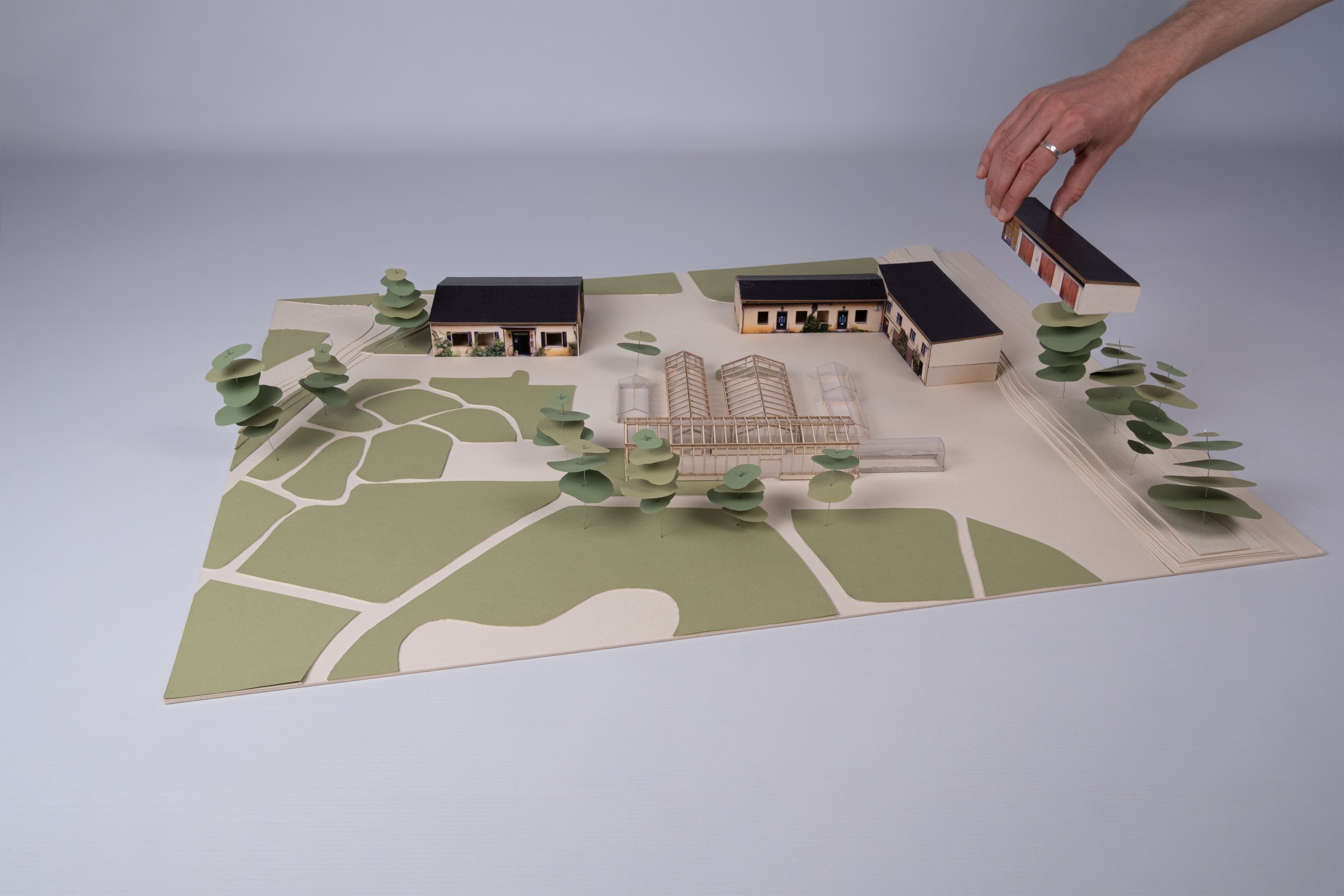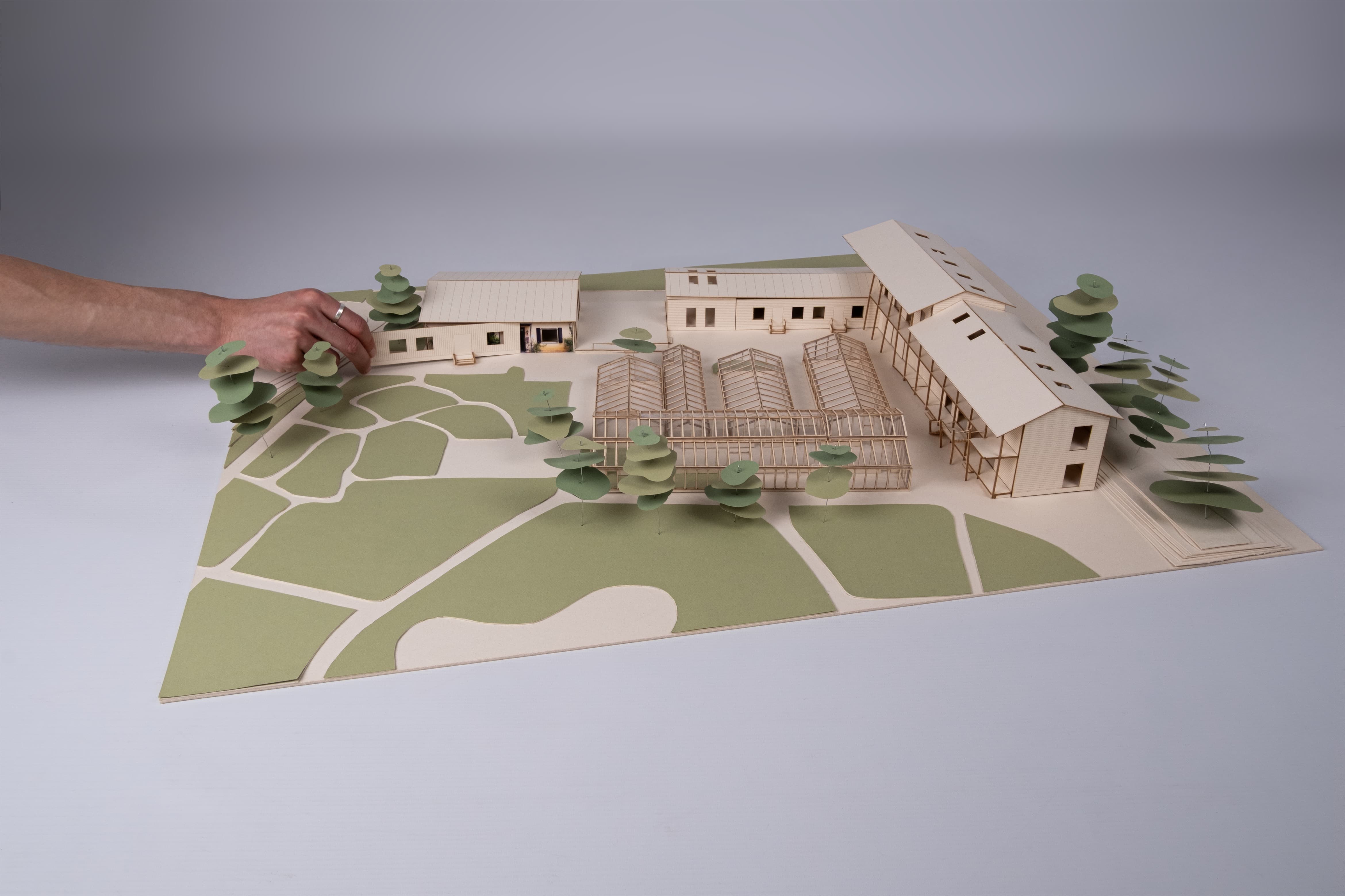 Auf dem Gelände des Schulbiogischen Garten Leipzigs soll ein Ort für Bildung zur nachhaltigen Entwicklung (BNE) entstehen. Aufgabe ist es, einen Ersatzneubau zu planen, der den heutigen Anforderungen an Barrierefreiheit entspricht, Nachhaltigkeit auf Gebäudeebene vermittelt und auf ca. 2200 m2 Raum schafft für multifunktionale Lehr- und Begegnungsräume, Werkstätten und Gewächshäusern. Hauptbestandteil der Planungsaufgabe ist die Entwicklung einer ressourcenschonenden Bauweise. In diesem Zusammenhang bedarf es dringend einer Prüfung ob die Bestandsbebauung diesen Anforderungen gerecht werden können. Bei einer Bestandsaufnahme wurden Schäden in Bauteilen der Gebäudehülle deutlich, auf die das bemängelte Innenraumklima zurückzuführend ist. Die tragenden Bauteile hingegen wurden größtenteils als weiter nutzbar erachtet. Vor allem hinterließen jedoch die räumlichen Qualitäten des Geländes, das durch seine verwinkelten Plätze, der kleinteiligen Struktur und Höhenstaffelung einen eigenen Charme entwickelt hat, einen bleibenden Eindruck. Ziel des Entwurfs ist sowohl der Erhalt bestehender Strukturen als auch der Atmosphäre des Ortes. Hierzu werden vorhandene Gebäude ertüchtigt und durch Erweiterungsbauten ergänzt, die den Schulbiologischen Garten zu einem naturnahen Bildungsort vervollständigen. Im Sinne der Bauwende ist es wichtig, gerade räumliche Potenziale solch »einfacher« baulichen Strukturen aus der zweiten Hälfte des letzten Jahrhunderts zu untersuchen und aufzuzeigen, wie eine Zukunft mit ihnen weitergedacht werden kann. Der Entwurf zeigt auf, wie eine Ertüchtigung und sensible Erweiterung zu einer besonderen Raumqualität führen kann, die einem Neubau keineswegs nachsteht und die Zeitschichten des Orts sichtbar macht.